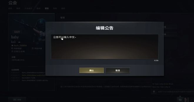 会长可以在战队公告位置进行编辑公告,内容是可以输入中文的~